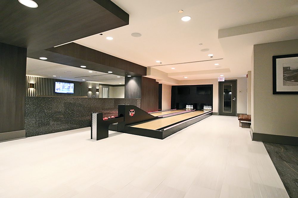 Streeterville’s Optima Signature has you covered even when the snow’s flying with a light and bright indoor bocce court. This beautiful space also includes a fitness studio and putting green.