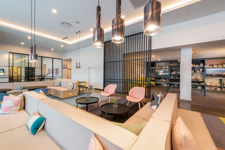 Modern apartments and tech-forward amenities, including EV parking.