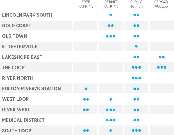 If you plan on relying on a neighborhood that offers permit street parking or free street parking, consider how often you will need to move your car and how diligent you are about remembering to move it. Free parking can be scarce, but permit parking is a bit more plentiful. Keep in mind, a permit is a permission to park – not a guaranteed spot. A lot of us have found this out the hard way. Here’s a little chart to help break down the parking by neighborhood.