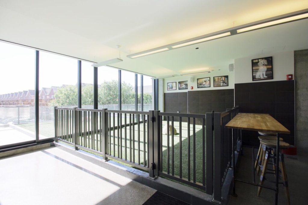 - Indoor/outdoor dog run (during the summer, the glass doors open to create a massive indoor AND outdoor space)