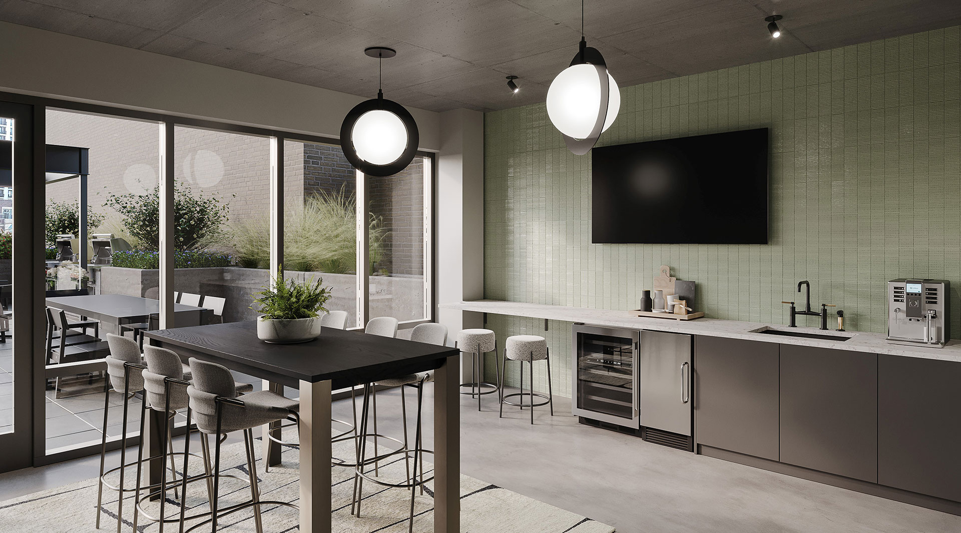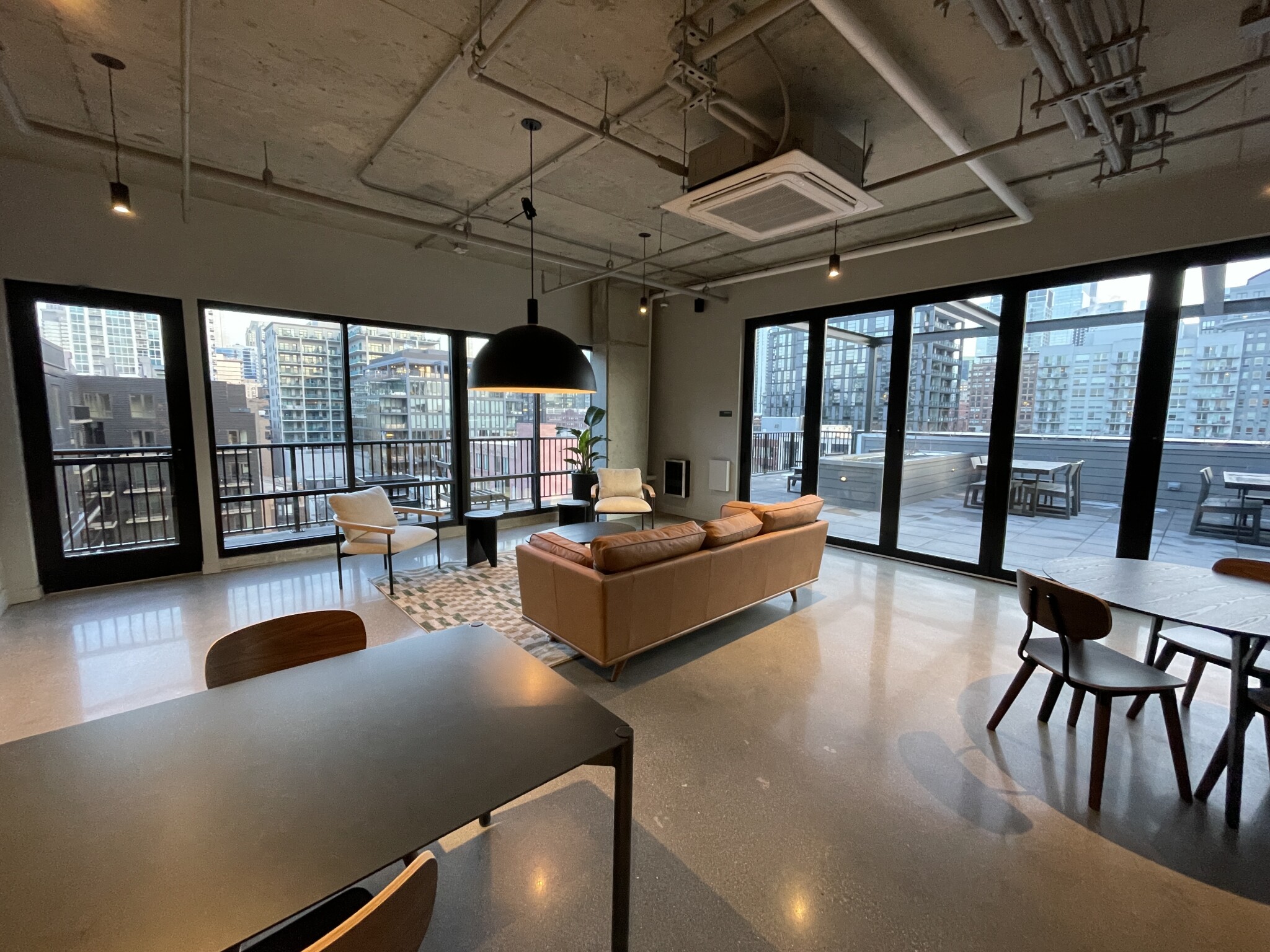 Stay in shape at the well-equipped fitness center, complete with Peloton bikes and a yoga studio. On sunny days, head to the pool and sun deck with southern exposure for optimal sunbathing. For a breathtaking city view, visit the top floor sky deck. There are also co-working spaces with conference and breakout areas, and fire pit lounge areas and cabanas for relaxation when the workday is done.