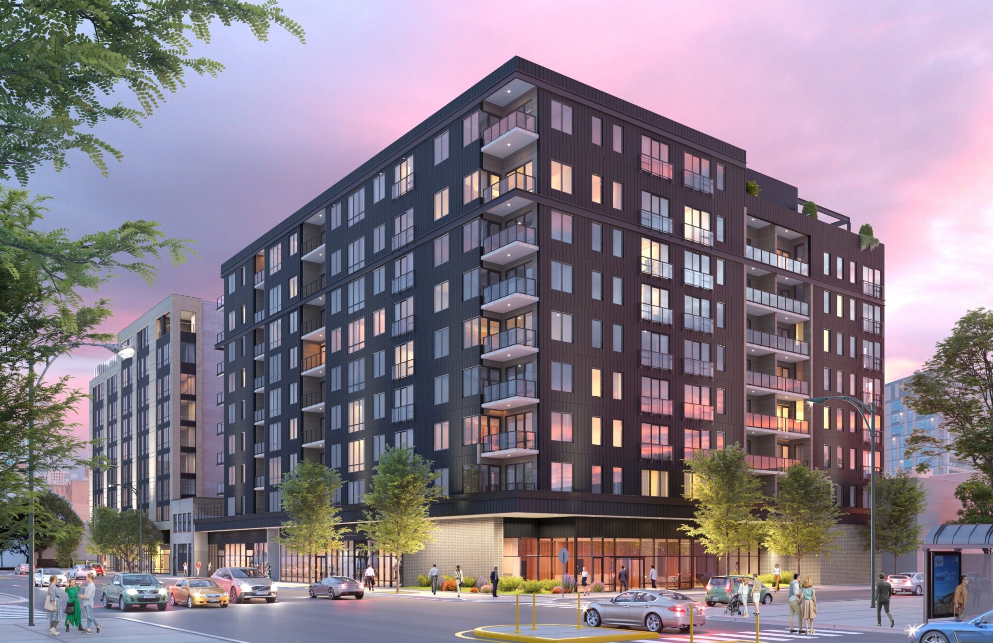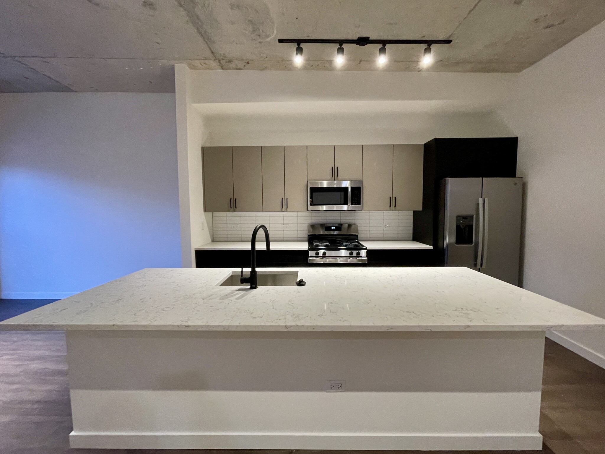 Inside the apartments, you'll find a sleek and modern design with matte black fixtures, stainless steel appliances, tiled backsplashes, and the convenience of an in-unit washer and dryer. Select units (including studios!) even have a private balcony!