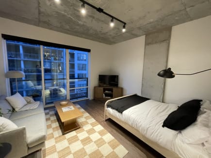 Stay in shape at the well-equipped fitness center, complete with Peloton bikes and a yoga studio. On sunny days, head to the pool and sun deck with southern exposure for optimal sunbathing. For a breathtaking city view, visit the top floor sky deck. There are also co-working spaces with conference and breakout areas, and fire pit lounge areas and cabanas for relaxation when the workday is done.
