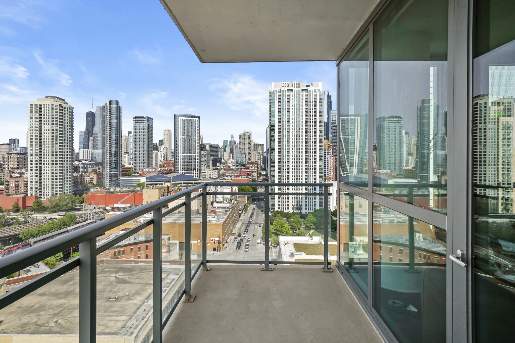 This gem of a high-rise recently opened in a prime Fulton River District spot and it impresses both inside and out! The location is ideal for commuting, with the CTA Green, Pink, and Blue Line trains as well as Union Station and Ogilvie Transportation Center within walking distance. The building towers over I-90/94, meaning highway access is also easy. Nightlife is equally accessible: pick a direction, any direction, and be at a great bar or restaurant in 15 minutes or less on foot. (Restaurant Row begins just a few blocks south). Step inside and you’ll discover a stunning lobby bathed in natural light, which leads you to a host of amenities: a comprehensive gym with steam room, basketball court and yoga studio, a high definition movie theater, and a resort-style outdoor pool with cabanas, grills and fire pit. There’s even a private, residents-only footbridge connecting the lobby with Jewel-Osco grocery store! The building is 100% smoke-free and has 24-hour security door staff. As you would expect from a newer luxury property, the apartments here are top notch. Kitchens feature granite countertops combined with a beautiful glass tile backsplash, designer cabinetry and stainless steel appliances. Plank hardwood flooring runs throughout every living space (the bedrooms are carpeted) and each unit was a washer and dryer. Select units have a balcony, and higher floors offer gorgeous city views. Parking is available on-site at an additional charge. Cats are accepted throughout and dogs are welcome on most floors (dog breed restrictions apply, but there is no weight limit). The building has a massive outdoor dog run for your four-legged friend!