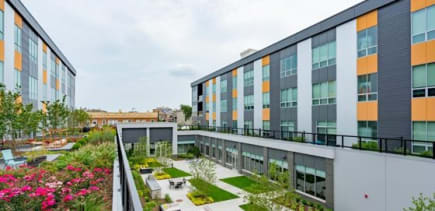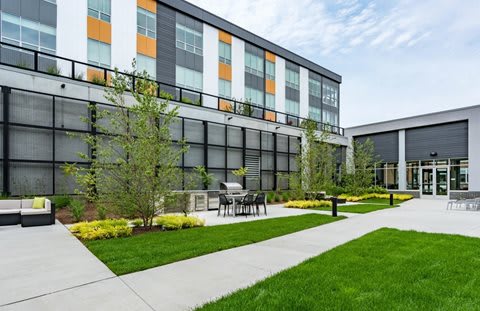 Pets are welcome with breed restrictions, and there is an on-site dog washing station. You’ll find the 606 elevated trail and adjacent neighborhood park are nearby within a short walk.