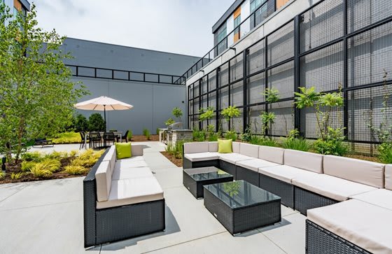Community amenities abound at this boutique property, including a fitness center, resident lounge, and a landscaped courtyard with an outdoor kitchen and comfy patio lounge furniture. Onsite services include a Stockwell smart store, Tide Dry Cleaners, Luxer One Package System, and bicycle storage and repair station.
