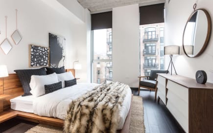 Lucky residents are just steps from the Grand Avenue CTA Blue Line and within walking distance of River North and the Fulton Market District. Parking is available on-site at an additional charge, and they even offer indoor heated garage parking. Last but not least, your fur babies are welcome here (dog breed and weight restrictions apply), with the pups enjoying a rooftop dog run to get the energy out.