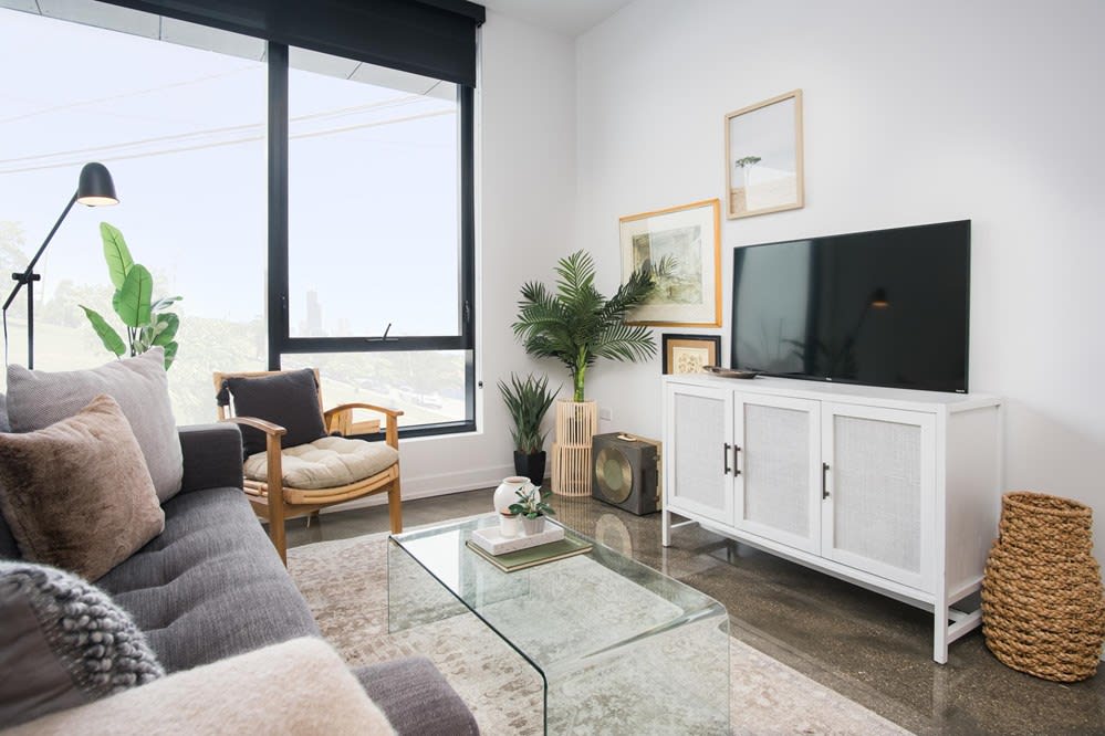 This brand-new luxury apartment complex added 202 apartments near the Illinois Medical District in 2021. Taking up an entire wedge-shaped city block, this unique 7-story property is also adjacent to three cool neighborhoods in Chicago’s Lower West Side -- Pilsen, Little Italy and UIC’s University Village. These apartments are high on stylish details with industrial-chic light fixtures, polished concrete floors and sky-high ceilings. Each unit includes stainless steel appliances, a gas range stove, an in-unit washer and dryer, a bold tile backsplash, and sleek bathroom with glass-enclosed rain shower. Select apartments also feature balconies, walk-in closets and kitchen islands. The amenity space is more than the icing on the cake. You’ve got 8,500-square-feet built for relaxation and recreation with a fitness center, beautiful spacious lounge, and an outdoor rooftop pool deck with gas grilling stations and alfresco dining area. This is a convenient location for folks working in the Medical District, Loop, South Loop, or needing to commute regionally. There is plenty to explore with diverse restaurants, culture and several parks surrounding the area. Stock up on essentials at nearby big box stores on Roosevelt Road, or make new friends shopping at convenient neighborhood bodegas. Cats and dogs are allowed, and the sprawling Addams/Medill Park is just a couple of blocks away where you and your pup can get plenty of exercise. There is a Loop Link bus stop right on the corner that will take you downtown, and also has a stop within a block of the Racine CTA Blue Line Station. The Halsted Street Metra Station is also nearby for folks commuting to the western suburbs. If you own a car, on-site garage parking is available with additional fees, and there is a complimentary bike storage room too.